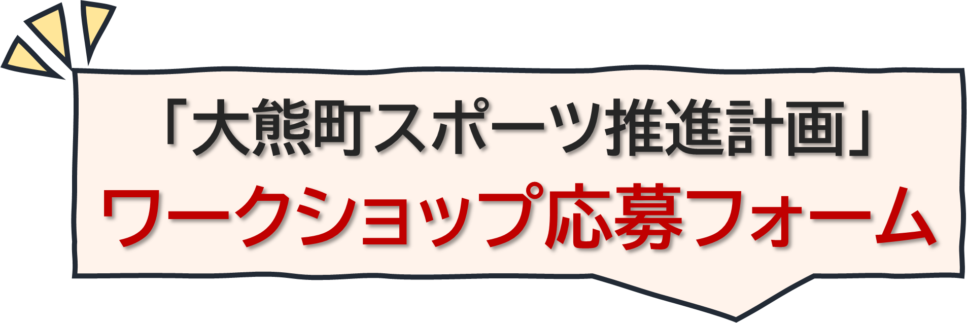 - 「大熊町スポーツ推進計画」を策定するにあたり、町民の皆さまや、町内で運動・スポーツに関する活動を行っている方などの、様々な「想い」を取り入れたいと考えています。運動・スポーツの振興やスポーツによるまちづくりを推進するために、「大熊町が目指すべき方向性」や「そのためにどんなことができるか」などについて一緒に考えていただける方を募集いたします。