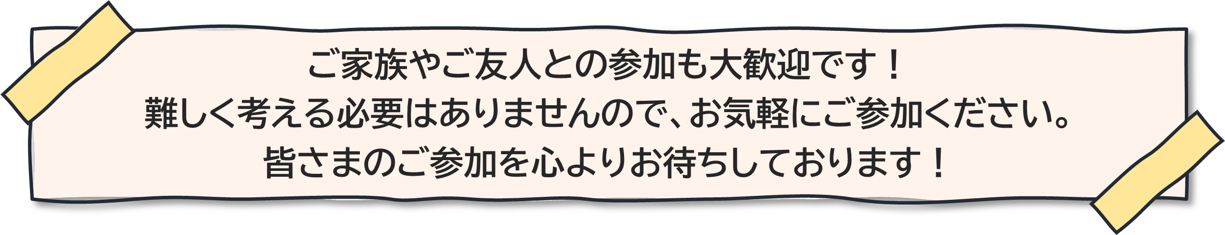 - ご応募いただいた方へは、開催日の前日に参加確認のメールを差し上げる予定です。「参加してみたい」「興味がある…」という方は下記の「入力画面へ」をクリックしご連絡先の入力をお願いいたします。